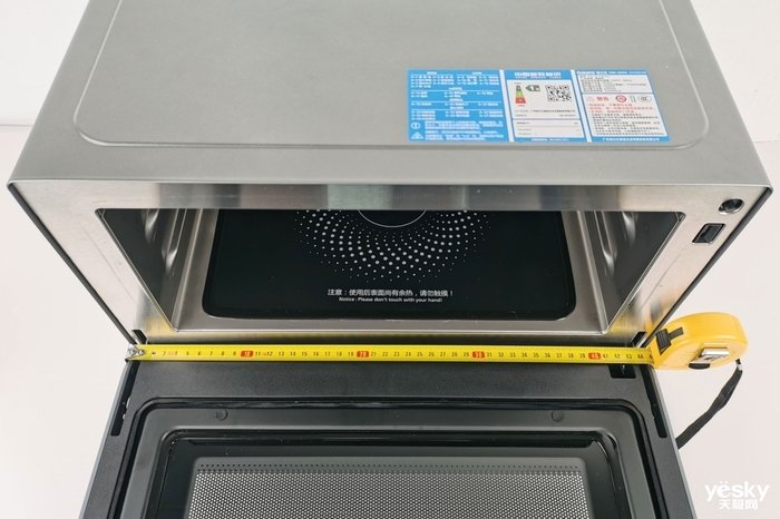 它的长宽高为450x370x331mm,三条边最大都不超过50cm,跟一般的小型微波炉差不多,很是节省宝贵的厨房空间。同时它的炉腔容积有20L,与普通微波炉相同,蒸鱼、烤鸡都不成问题。