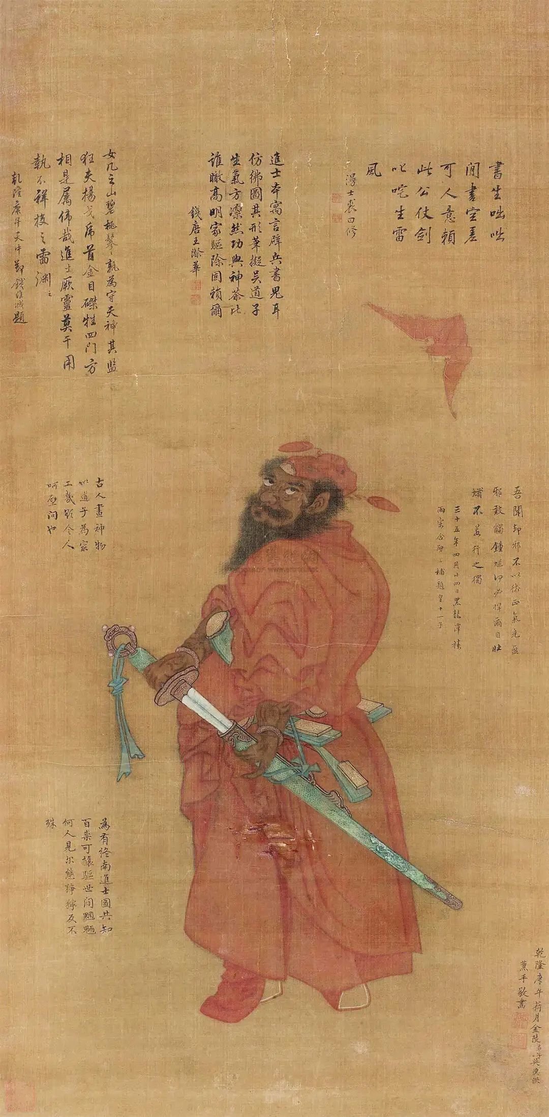 提到「捉鬼」、「驱鬼」,中国人最先想到的就是钟馗。相传钟馗乃唐德宗年间的进士,虽然文武全才,但相貌丑陋,入宫晋见皇帝时,皇帝本要将他钦点为新科状元,不料一看到他那张令人望而生畏的脸孔,当场吓得魂不附体,说什麼也不愿把状元头衔颁给他。钟馗不甘受这奇耻大辱,愤而自刎。事后,唐德宗颇有悔意,便命人将钟馗以状元的身分安葬,并封他为驱魔大神。