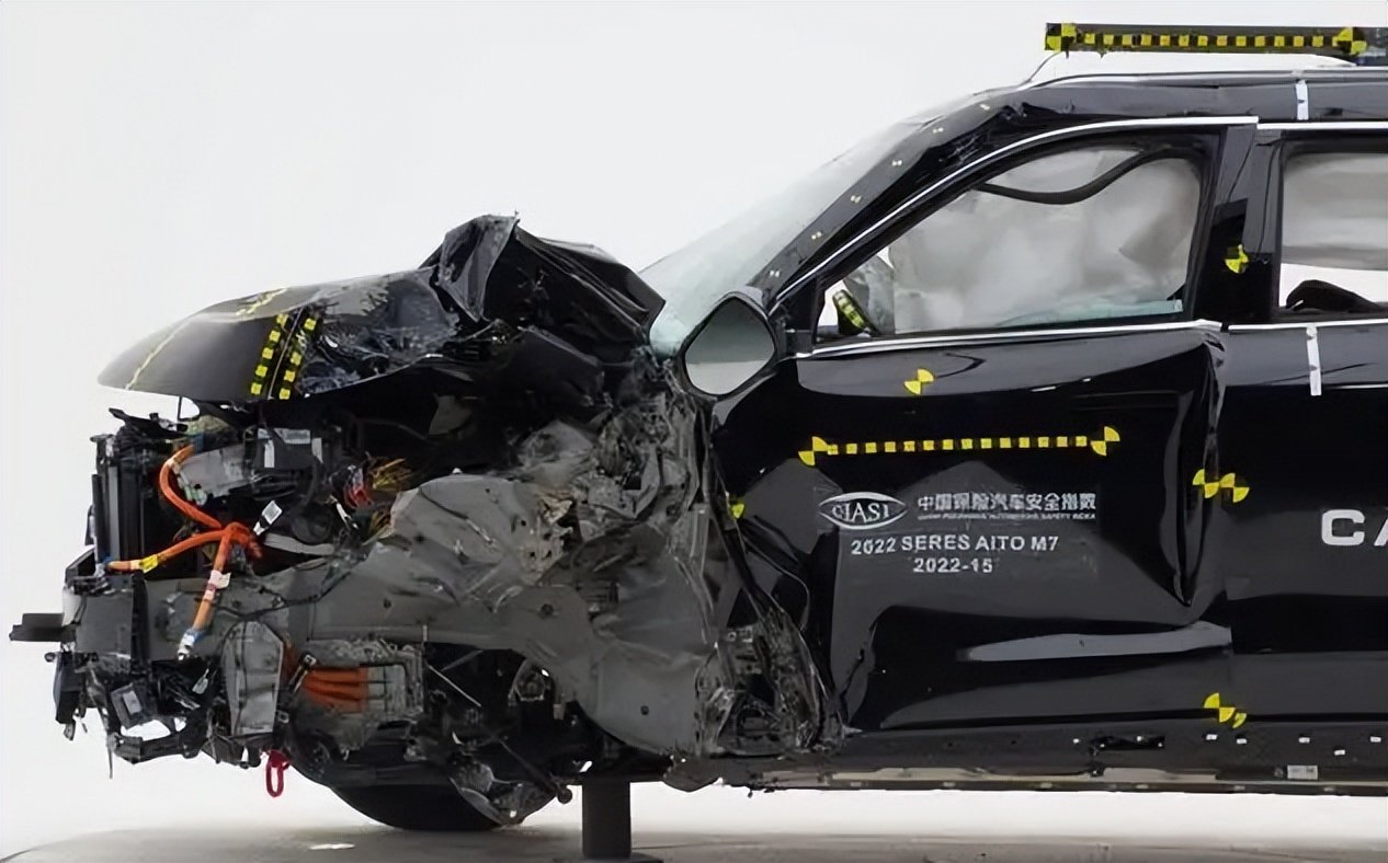就拿最近来说,作为新势力车型之一的问界M7,便在前不久的中保研碰撞测试中“折了腰”。因为在进行正面25%偏置碰撞时,问界M7的A柱是发生了变形,然后在“乘员舱上部入侵量”和“车辆结构”两项测试中,它也仅获得了“A”(良好)评价。