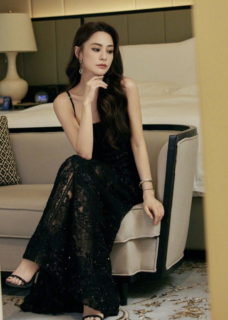 2022年12月9日,钟欣潼芭莎美妆大奖黑裙造型写真。