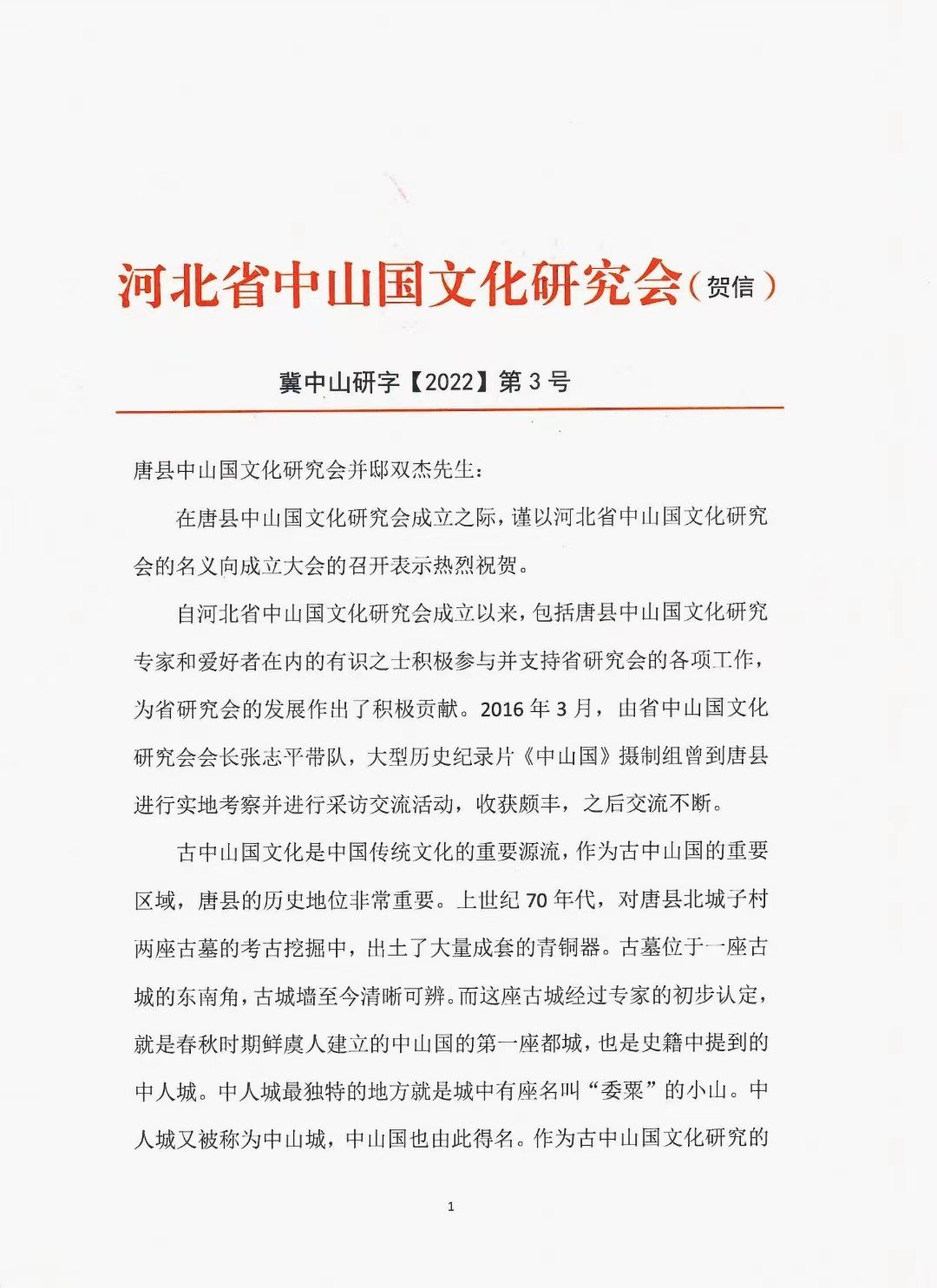 一、建议 从官方舆论导向入手,增强对中山国历史在唐县本土的宣传推广。
