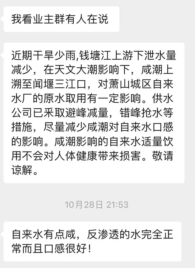 笔者坐标杭州市,从小看着钱塘江、贴沙河、赤山埠逐渐变干净,所以对于江南地区水源还是很有信心的。早年家庭用水,超滤机完全可以独当一面,可没想到这波咸潮入侵直接让超滤“失效”。对于饮水,甚至刷牙都成了问题,如此猝不及防必然要转战反渗透净水了。