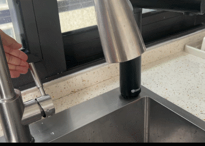 相比之前使用的超滤龙头,对比起来A418H龙头确实体积很大,非常霸气。由此也出现两个新的问题,一是开孔尺寸有一定要求,不锈钢台盆一般没什么问题,大理石台面可能有后续开孔的概率。第二,相比传统镀铬龙头,纯黑设计多多少少与不锈钢台盆有很大视觉差,吸睛程度自然不必多说。考虑到A418H强劲的出水量,将来厨房C位应该要易主了。