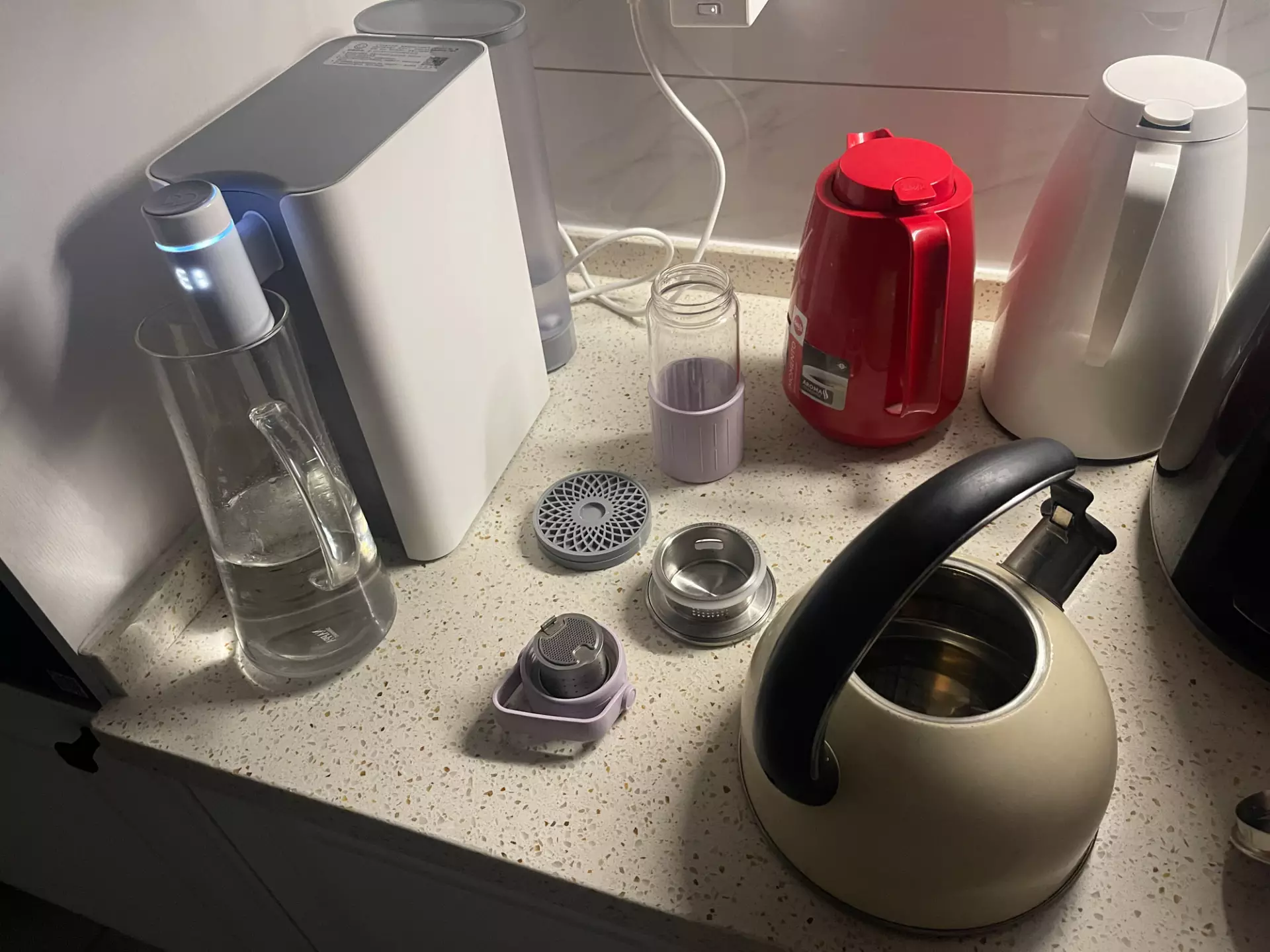 家里目前厨房使用的是超滤净水机,平时喝水基本靠台式即热饮水机解决。这次遭遇咸潮现象,超滤先败下阵来,台式即热饮水机因为内置反渗透,所以还能顶一下。不过受限于水箱容量、制水速度、龙头位置,我只能一次次搬运水箱、制水、等待、烧水,接到热水瓶里,每天差不多要耗近一个小时在这上面。