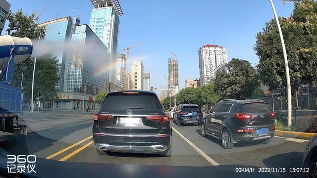 这个也是中午拍的,旁边的洒水车送了一道彩虹,正好这个画面角度比较特殊,太阳在背后,前车车牌正好是太阳反光的位置,是看不清的,不过开动后只要角度变一下就能看清楚。