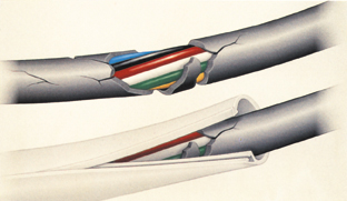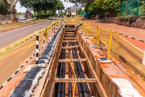 由于重物砸伤电缆,挖掘机不慎误伤电缆,在敷设时电缆弯曲过大使绝缘受伤,装运时电缆被严重挤压而使绝缘和保护层损坏,由于底层沉陷直埋电缆受拉力过大等,均导致绝缘受损,甚至会拉断电缆。避免电缆机械损伤可采用架空电缆,如果是沿墙敷设的电缆应加以遮盖,地埋应有明显的标识,并及时制止在电缆线路附近取土。
