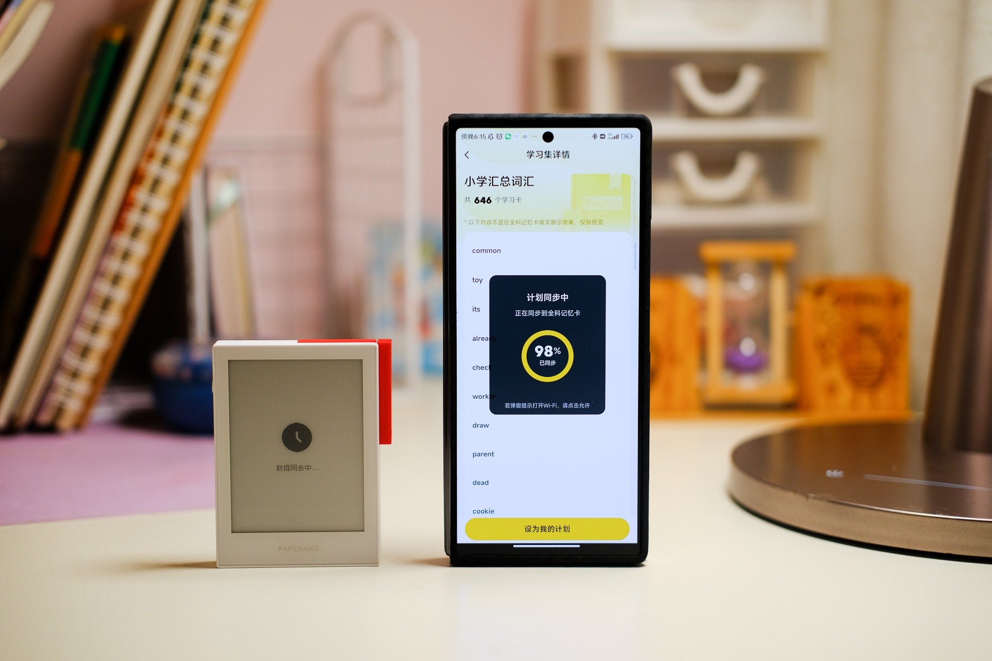 我女孩现在在上小学六年级,我也更多的关注此阶段的一个学习资源。背单词方面,它拥有人教版教材配套的词汇,还有新概念英语的词汇,另外,语文、数学,包括一些古诗词背诵、课外知识,知识覆盖还是挺全面的。家长在手机端选择相应的学习卡,点击设为我的计划,就可以把该知识学习卡同步到喵喵智能学习卡Q1,傻瓜式操作,还是比较人性化的。