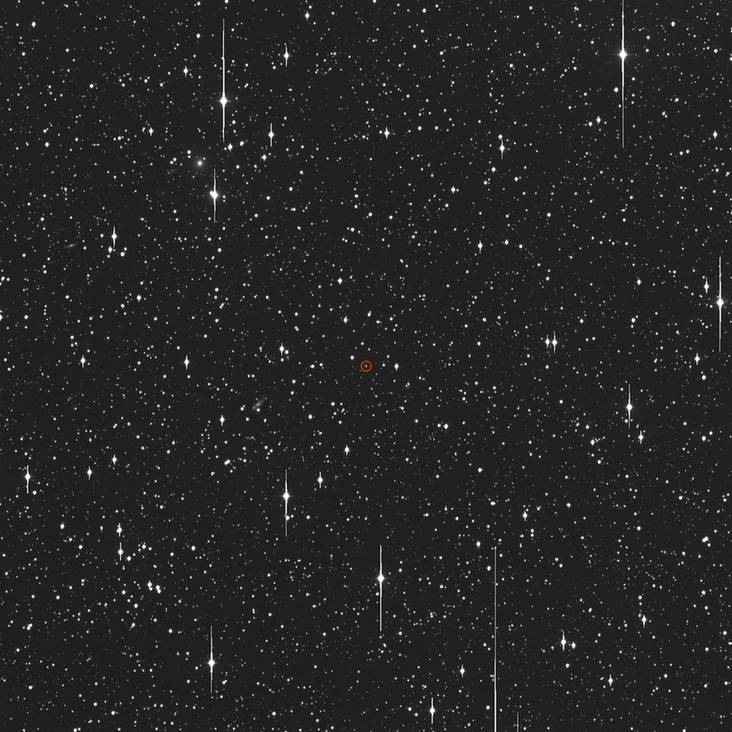 兹维基瞬态研究机构在2019年10月19日抓取了这张AT2019dsg潮汐瓦解事件(红圈内)快照。
