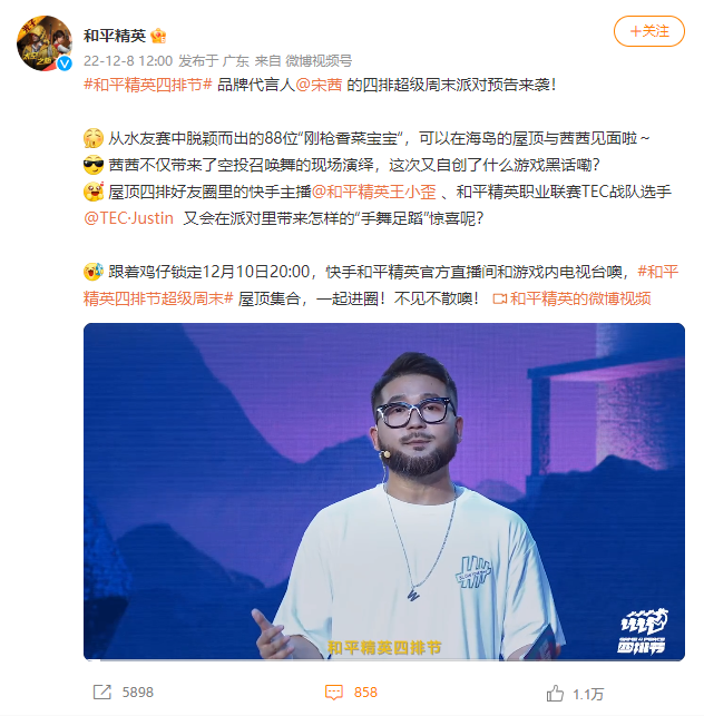 最近正值和平精英四排节,快手官宣了一则消息,引起了观众们的高度重视。作为和平精英代言人的明星宋茜即将在12月10日晚20:00空降快手直播间,与快手主播王小歪进行梦幻联动,给观众们带来精彩的节目效果。不少观众听到这个消息之后纷纷表示十分期待,希望看到两个人同台竞技的互动效果会是怎样的。