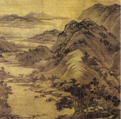 南方山水画派是以南方自然山水为描写对象,南方的地域特征是山峦平缓,连绵不绝,草木丰茂,烟岚清润,江水浩渺,境界辽阔。这些特征,决定了南方派山水画构图、布景上的特色——平远。假如我们把南方派布景与北方派布景作一比较,不难发现,北方派布景险峻、壮伟,气势逼人,如临真山,构图多纵向(即上下)展开画境。而南方派布景平缓、幽远,景象辽阔,一泻千里,构图多横向(即左右)展开画境。巨然、刘道士亦有纵向取境的。