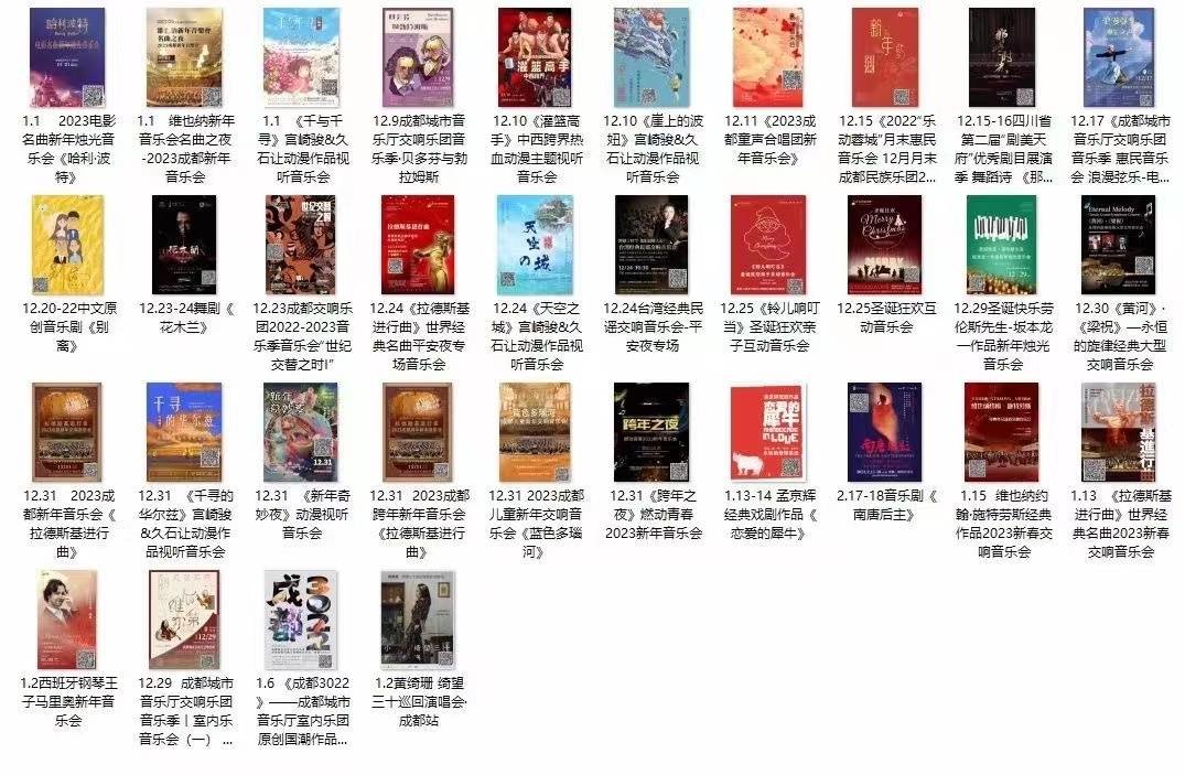 当天,成都城市音乐厅发布观众入场须知,称:“即日起,成都城市音乐厅对来厅观众不再查验健康码、核酸检测报告、通信行程卡、风险城市旅居史,不再要求扫场所码。请您入场时 全程佩戴口罩,保持安全社交距离。预祝大家观演安全愉快!”同时,音乐剧《别离》、 舞蹈诗《那些时光》、《崖上的波妞》宫崎骏&久石让动漫作品视听音乐会、舞剧《花木兰》等,均已开放购票通道。