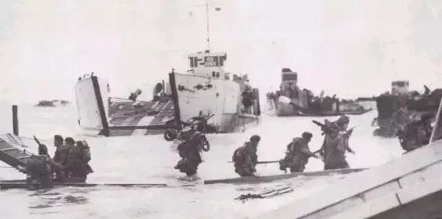 图注:诺曼底登陆中,扛着威尔摩托车上滩的突击队