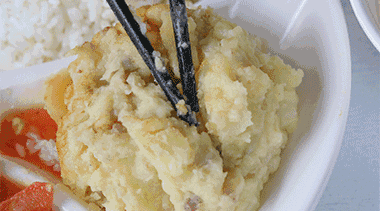 绵软柔糯的土豆泥,香味很浓,还有肉末在里面,带着甜甜的香气。