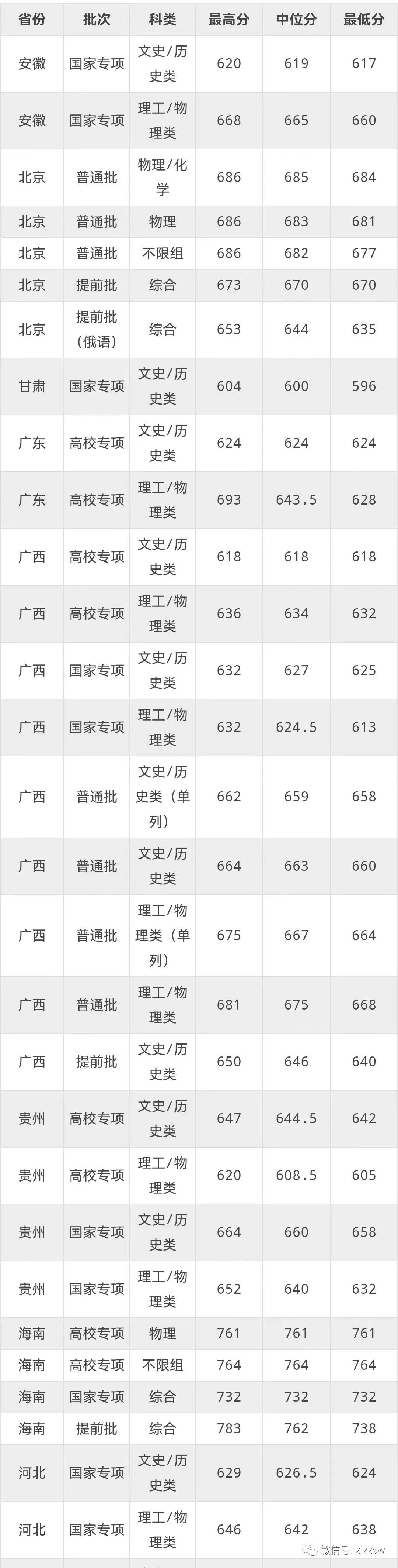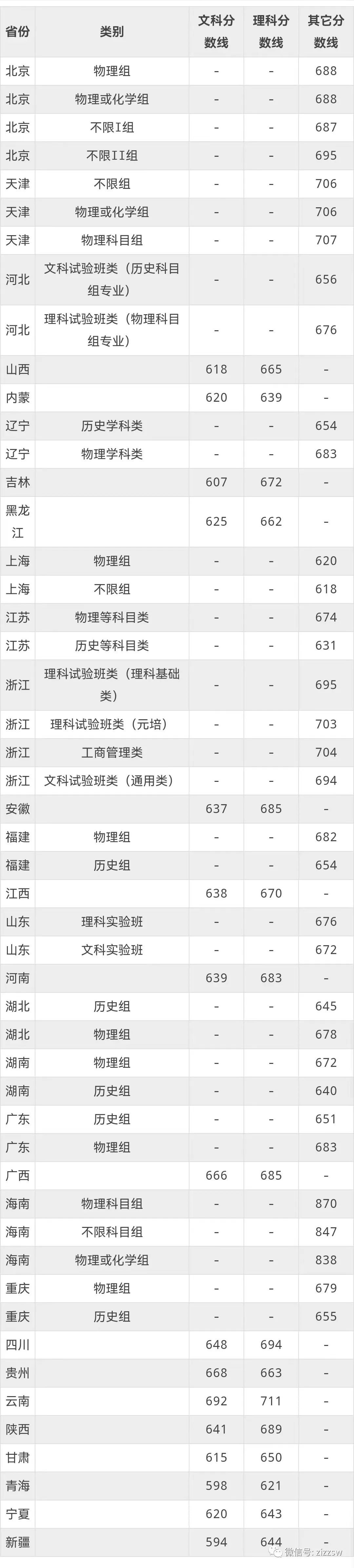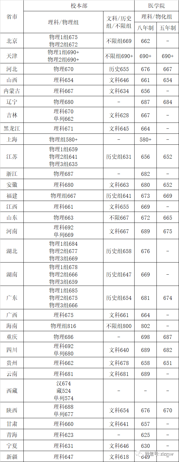 北京:不限组689分、物理组688分、物化组688分;
