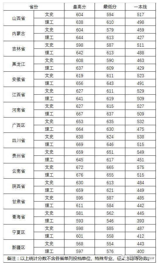 宁夏:理科637分、文科619分;