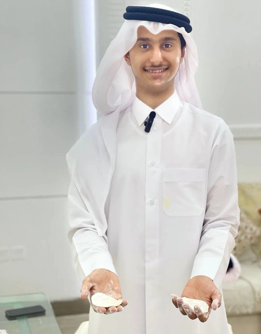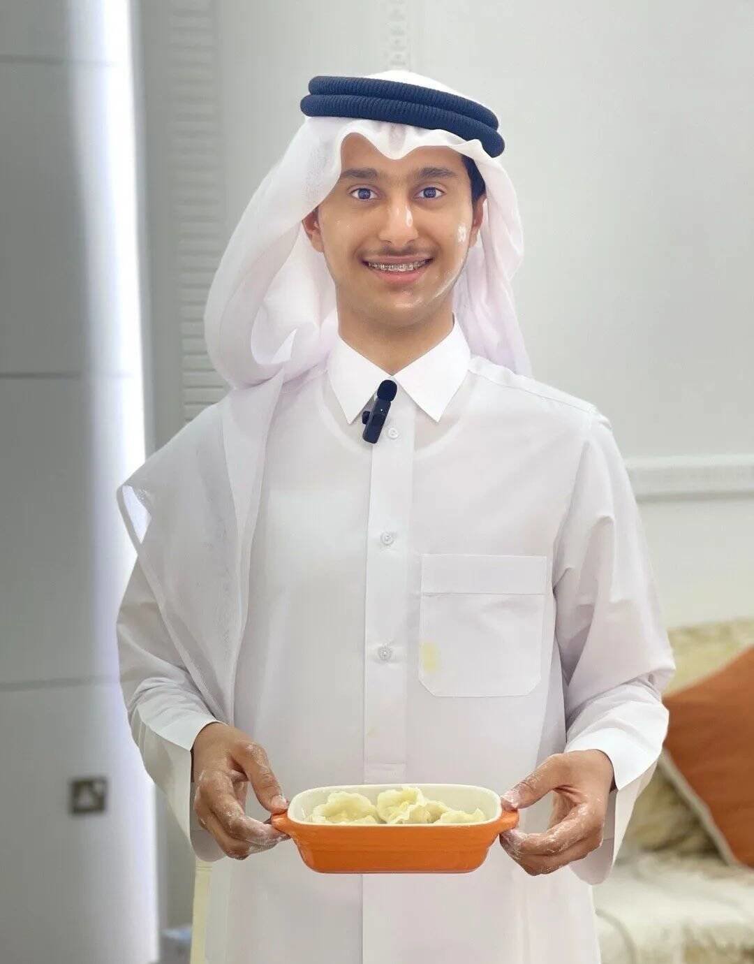 为了迎合饺子皮形象,拉伊卜还特意摆拍了一组包饺子的照片。