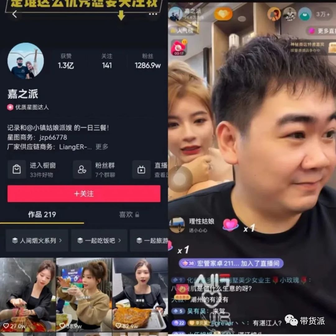 凭借分享豪横海鲜美食,嘉之派累积粉丝高达1286.9万,一度带火售卖海鲜的广东潮汕海鲜店老板娘和海鲜小哥。
