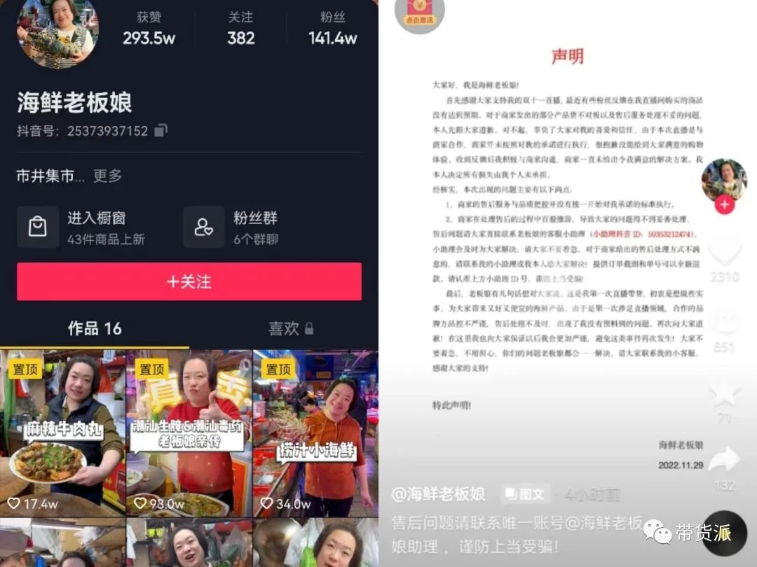 “还有产品的质量问题之后,我们跟老板娘这边也出了一个公告,所有商家不愿意解决的事情,我们跟老板娘我们全额退款。做到让大家满意的一个售后。人都会犯错,但是我觉得错了就挨打就立正。”