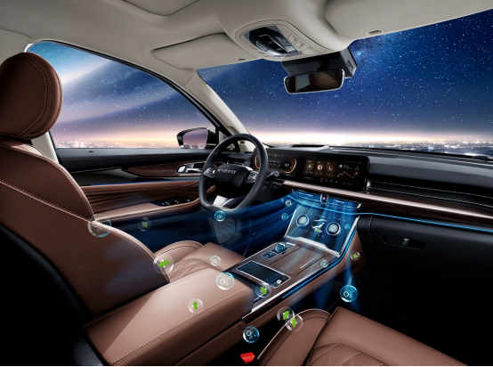 揽月采用了双12.3吋高清液晶大屏+中控屏联屏的高规格硬件,内置了最新的雄狮智云4.1系统。该系统搭载Intel 4核2.0GHz超级处理器,运算速度超快,在生物识别、AI互动、万物互联、智能驾驶等多个方面全面领先,懂得如何与用户交流,更拥有AR实景导航和9寸W-HUD抬头显示等最新潮的智能科技。这些丰富的功能让消费者在燃油车上也能享受到高端纯电动车才有的智能出行体验。