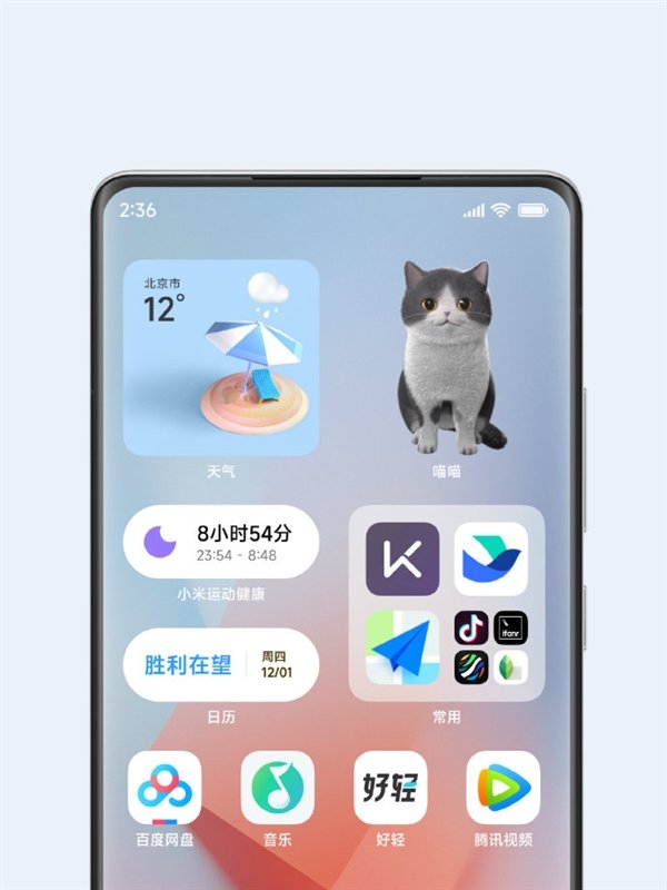 MIUI 14新增花宠小摆件,具有众多盆栽、宠物可选,可由用户自定义设置。养一只小可爱,在桌面时时相伴。