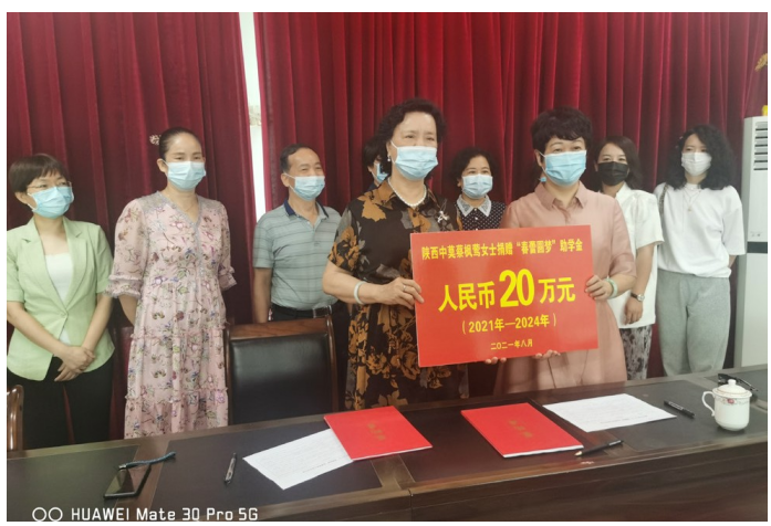 2021年8月4日通过陕西省妇联龚主席牵线陕西妇女儿童发展基金会每年捐助50000元共捐助20万援助困境学生。2021 年陕西省妇联携手西安市莆田商会驰援 山阳县教育事业,捐款购买学生用木质高低床,助力乡村教育事业。