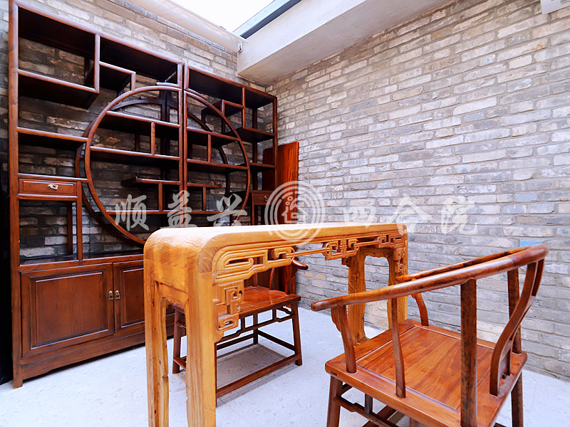 走进小院,客厅的整个空间被古色古香的实木家具布置的精致、典雅。经典的传统中式官帽椅,曲直相通,方中带圆,或醇厚,或素简,不仅椅子的高矮长短比例合适,就连木料粗细变化都十分的讲究。搭配桌案后面挂的两幅书法作品,使整个待客区域都充满了书香文化气质。