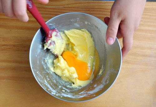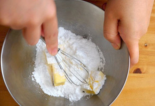 2.黄油糖粉一起搅拌均匀