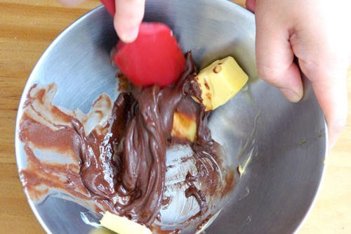 5.巧克力花生酱加入黄油一起叫吧均匀
