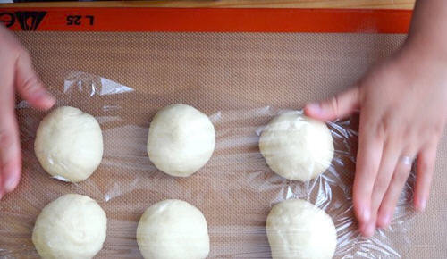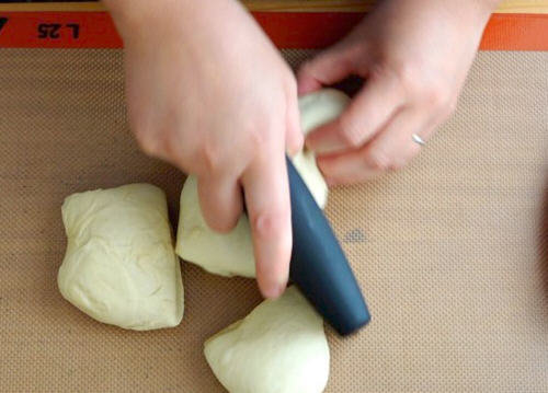 9.发酵好的绵软均匀分割成6份儿