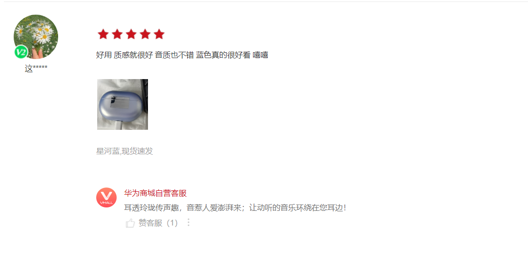 一位用户表示:好用,质感就很好,音质也不错,蓝色真的很好看,嘻嘻。