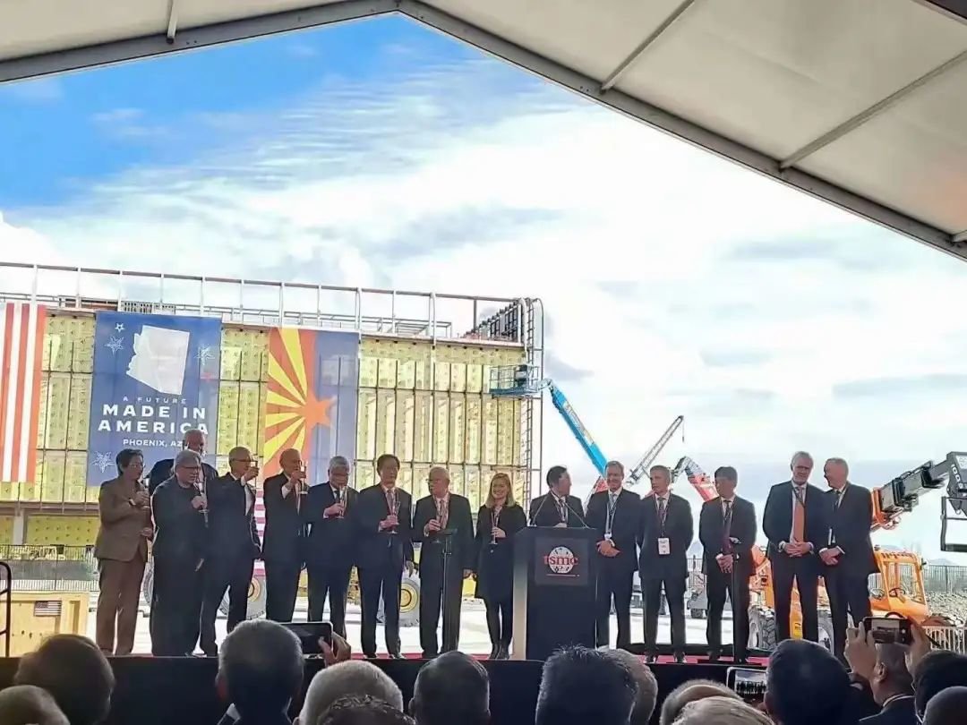 当地时间12月6日,台积电美国亚利桑那州晶圆厂举行了首批机台设备到厂典礼,美国总统拜登、商务部长雷蒙多、国会议员以及当地官员,台积电创始人张忠谋、总裁魏哲家和董事长刘德音,以及苹果、英伟达、AMD、应用材料、泛林等半导体企业高层均出席现场。