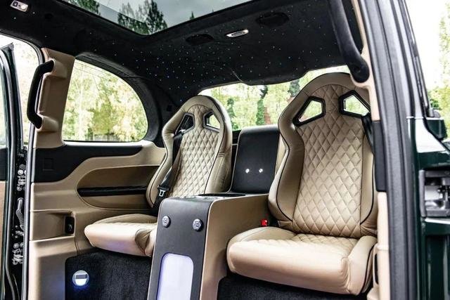 虽然Kahn改装厂将其命名为“Farelady”,但实质上这是LEVC品牌官方承认的改装版本。外观采用经典的黑色或者墨绿色,中网换了新的造型,据说灵感来自迈巴赫,而全车的镀铬装饰进行黑化处理,让全车黑得更彻底。