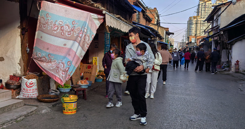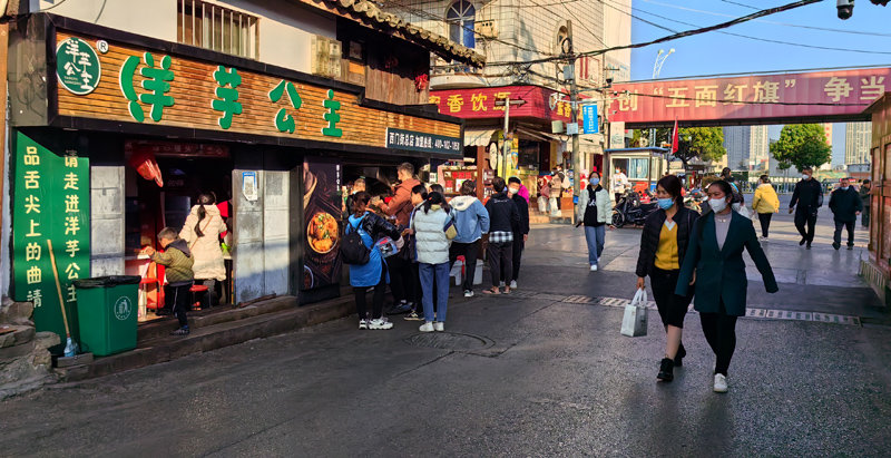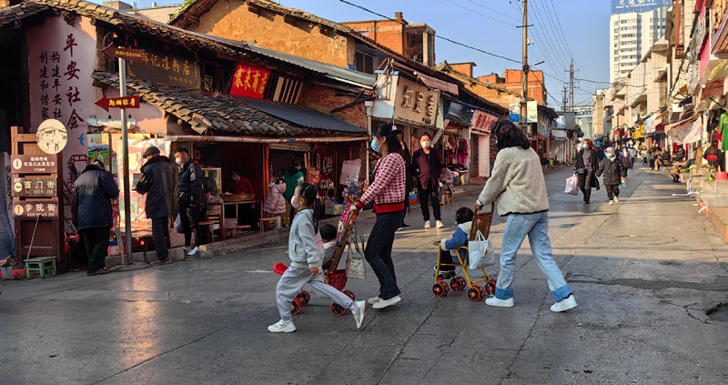 国家宏观放开疫情防控,实行有针对性的精准对应政策,一度防控形势严峻的曲靖市广大市民没有扎堆,也没有自闭,从容应对后疫情生活,曲靖老街秩序井然,市井生活烟火气颇显祥和氛围。