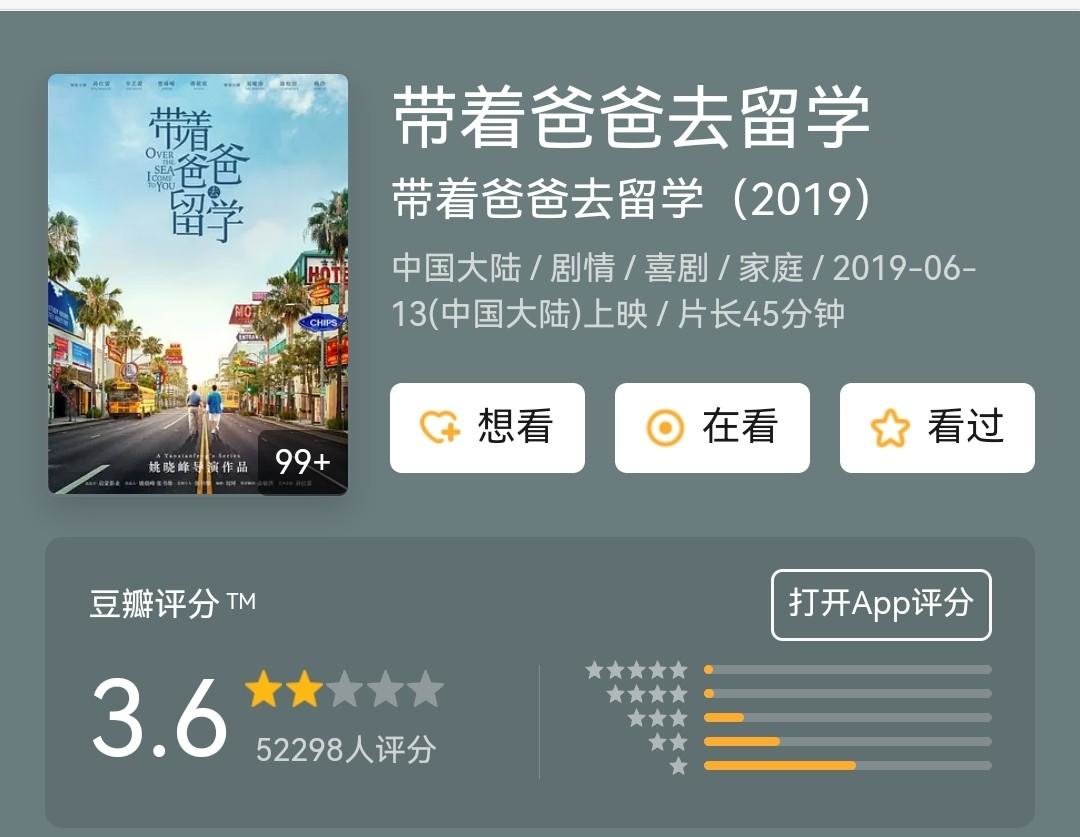 《带着爸爸去留学》豆瓣评分仅有3.6,这是孙红雷演艺生涯少有的滑铁卢。