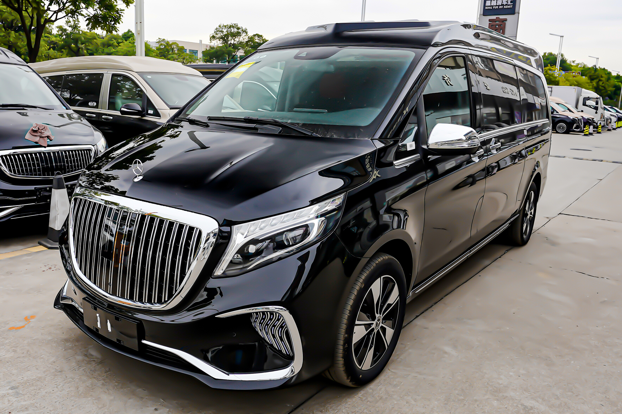 奔驰V260L商务车冰岛红款采用新款GLS包围,竖式的进气格栅,镀铬装饰,非常耀眼。2米08的高顶,镀铬腰线,隐私玻璃,整车磅礴有气势。过年回村回头率百分之两百~
