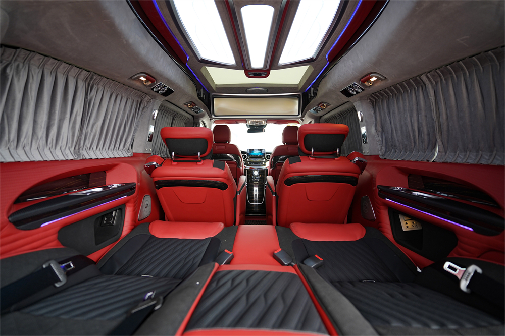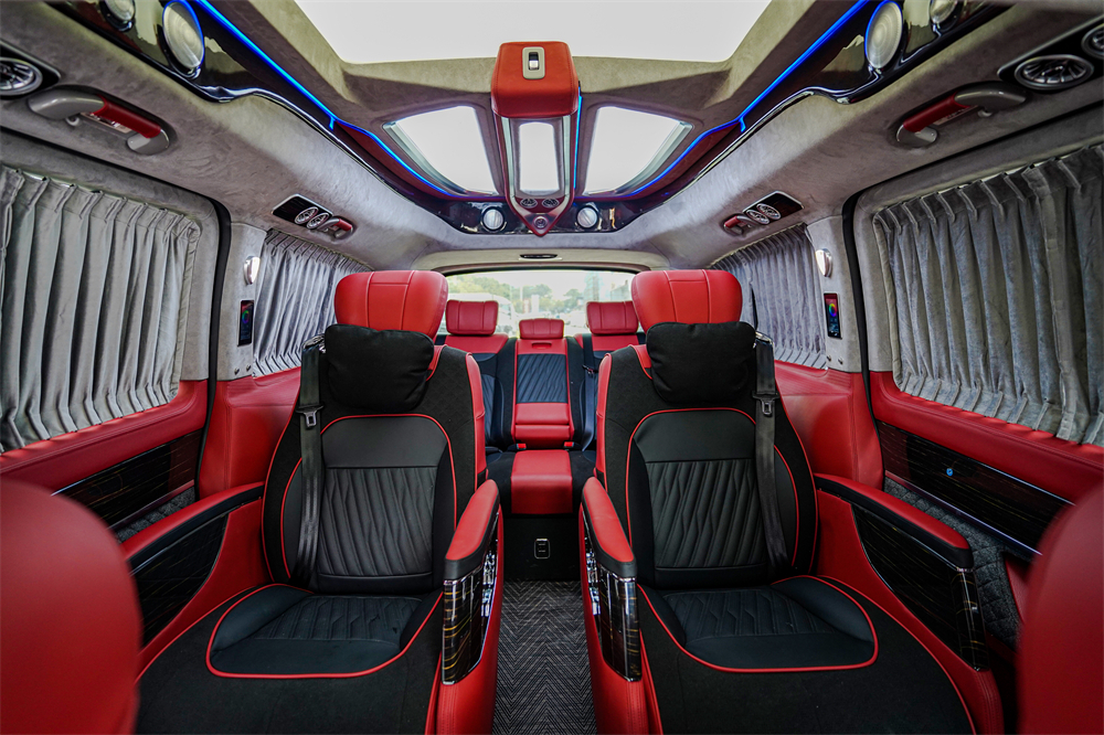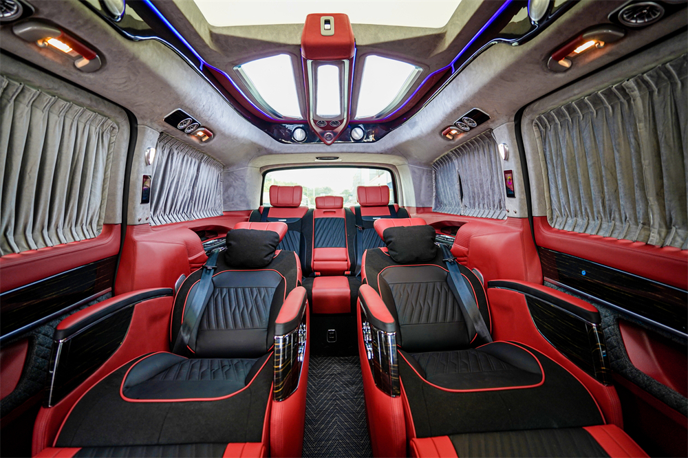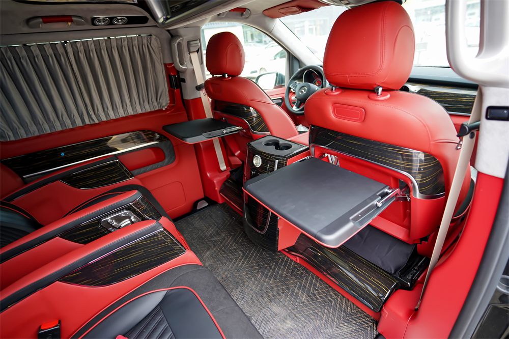 老板位置够舒服,那才叫豪华商务车。奔驰V260L商务车冰岛红款内舱采用独立航空座椅,NAPPA头等牛皮包覆,头枕、双折腿托、通风加热、按摩等功能都有,还能电动旋转,女生操作也非常方便。商务接待,非常有面子。