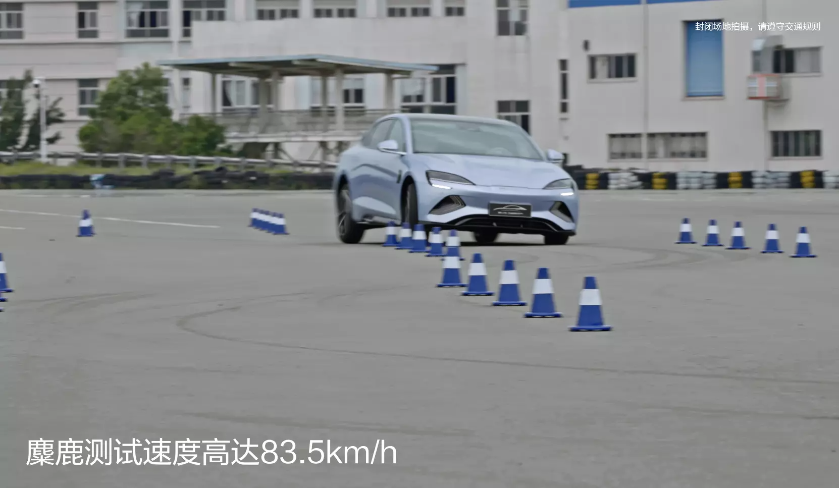而让比亚迪海豹车身扭转刚性最直接的体现就是麋鹿测试,最高通过速度可以达到83.5km/h,单移线测试通过车速133km/h,稳态回转最大横向稳定加速度1.05g,这些都能证明比亚迪海豹具备极佳的操控性能。