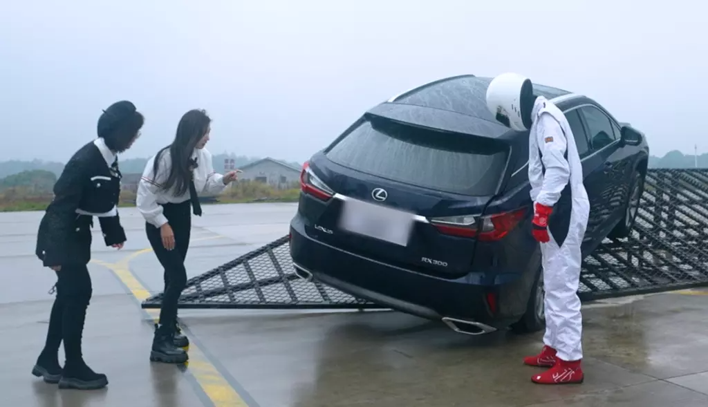 而第二轮测试则是加大了难度,采用了载人测试方案:后排乘坐2个壮汉。