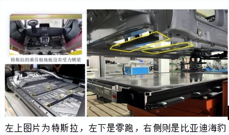 那么比亚迪海豹的高扭转刚性从何而来,这就要得益于比亚迪CTB车身电池一体化技术,它通过电芯集成底盘工艺达到浑然一体的底盘境界。从上图我们可以看出比亚迪的车身地板用辊压横梁左右贯通,底盘结构会比特斯拉复杂一些。特斯拉则是取消传统车身底盘横梁,将其融入到电池盖儿上端,原来车身底盘骨架只保留周边框架。