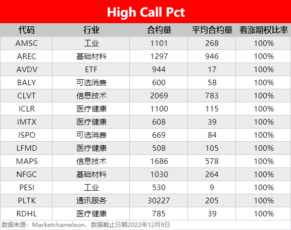 注:High Call Pct/High Put Pct是指相关期权标的当前看涨/看跌比例大小,该比值越高意味着该期权标的看涨/看跌的合约占比越高。