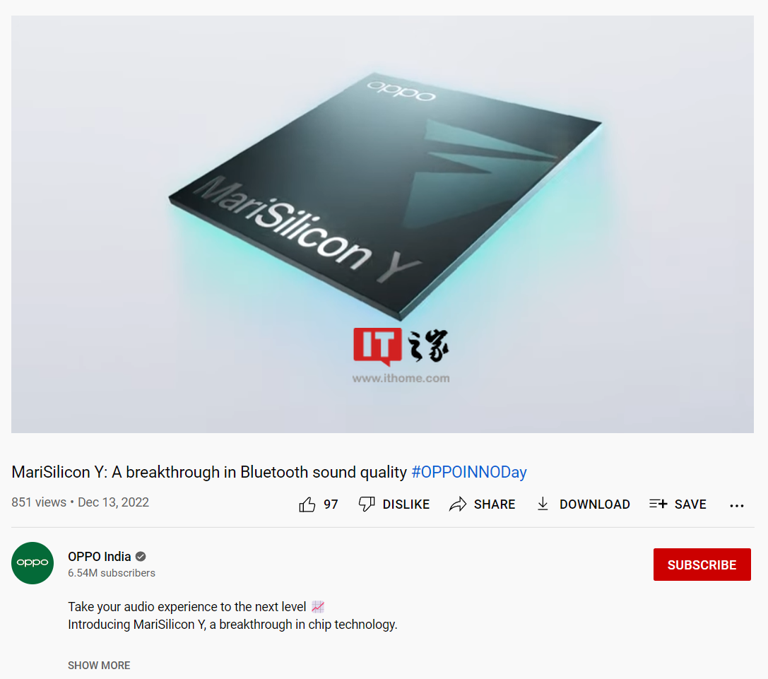 在发布之前,OPPO 印度官方已在海外公布了这颗芯片的名称和用途,该芯片名为 MariSilicon Y,按照此前 MariSilicon X 的命名方法,在国内的名称预计是“马里亚纳 Y”,用于提升蓝牙耳机音质。