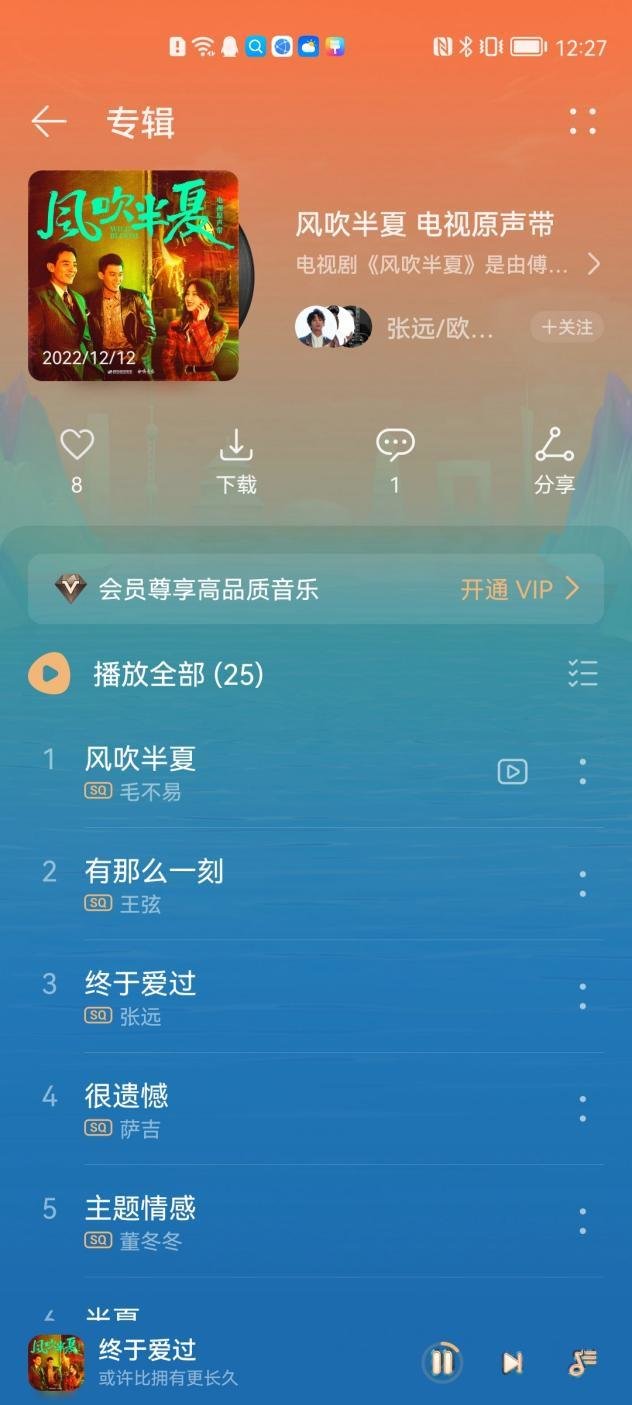 不过,剧中播放的这些经典老歌只是部分片段,很多人都表示没听过瘾。在这里笔者给大家推荐一个听全这些歌的方式,那就是打开华为音乐APP,搜索“风吹半夏”,然后就能发现《风吹半夏》电影原声带专辑,目前里面收录了26首歌,甚至包括了电视剧的主题曲,而且相信随着电视剧的播出,歌单会持续更新,还会有更多的歌曲加入到专辑中。
