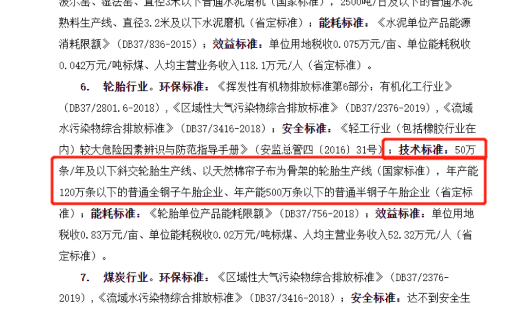 年中,山东省工业和信息化厅联合省内五部门发布《2022年山东省利用综合标准依法依规推动落后产能退出工作方案》,划定轮胎产能“生死线”。