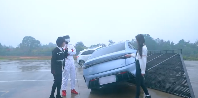 随后为更进一步的对这几款车安全性进行测试,他们又加大了测试难度,即在斜坡一端增加两个人的重量进行测试。