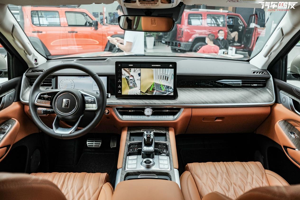 进入车内,坦克500对于这套座舱的打造同样舍得狠下血本:首先是材质部分,车内大量采用了NAPPA真皮包覆,基本上亲肤的位置都能给到温润柔和的触感享受。而在观感上,除了NAPPA真皮的细腻质感之外,坦克500这套内饰还加入了木质饰板并采用了包豪斯式的座椅纹理,细节之处十分考究。而年纪稍轻的朋友也无需担心这套内饰显得油腻,因为设计师选用了低饱和度的颜色搭配,看上去非常清爽,并不会给人老气横秋的感觉。降下车窗,还能看到坦克500配备了双层夹胶玻璃,NVH功效所带来的静谧性也是提升豪华感的必备要素。
