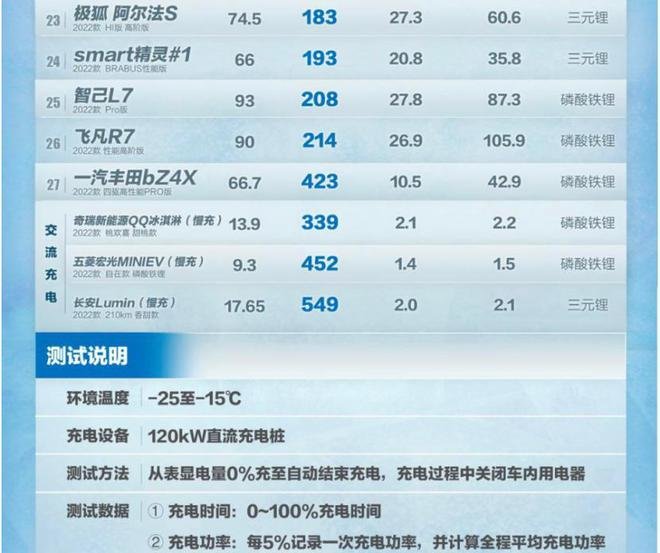 此外的一辆备受关注的新车精灵smart#1充电速度也是在21辆车中倒数的水平,66度电池充电时间长达193分钟,要知道这还是用了三元锂电池啊。