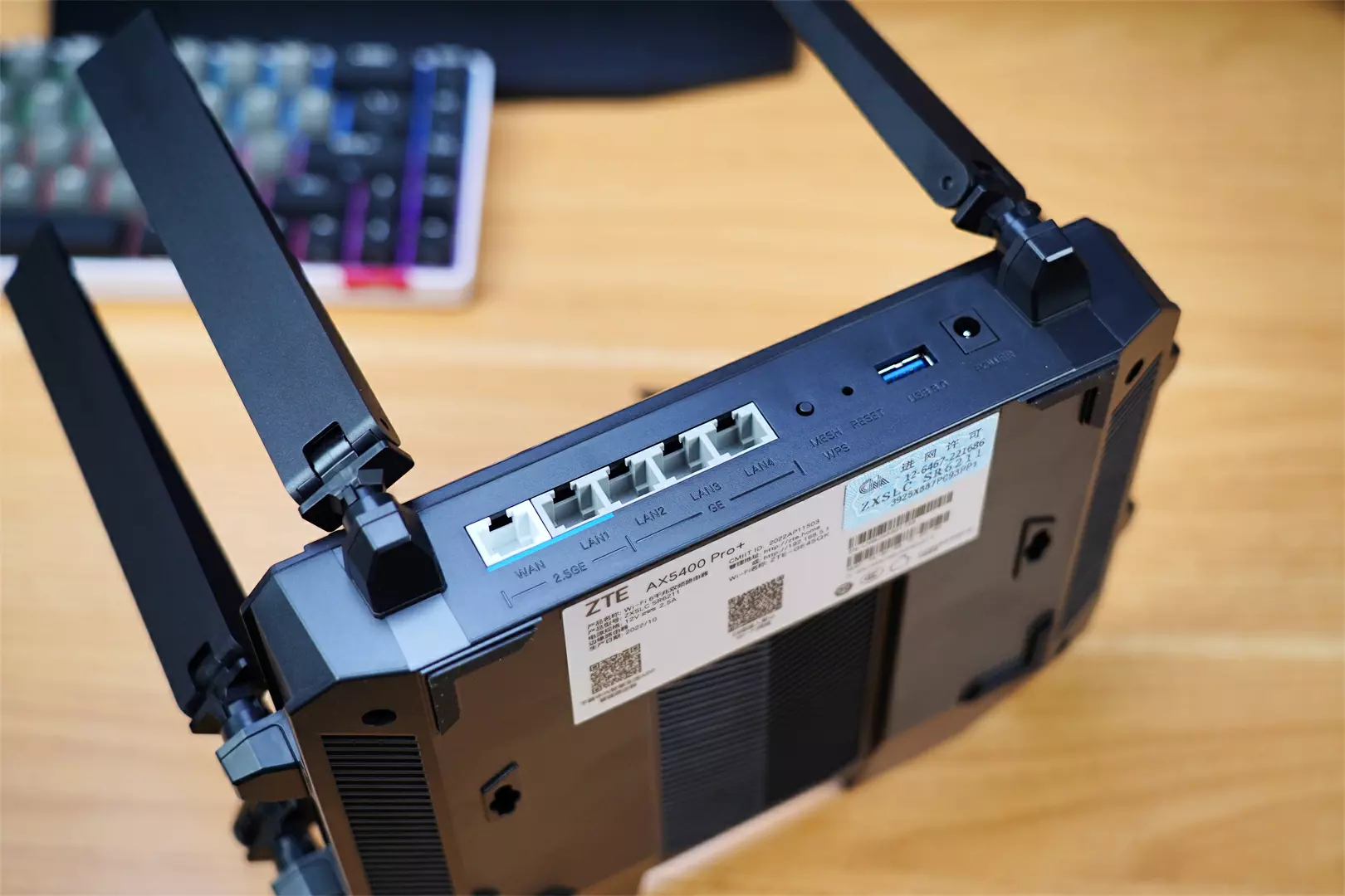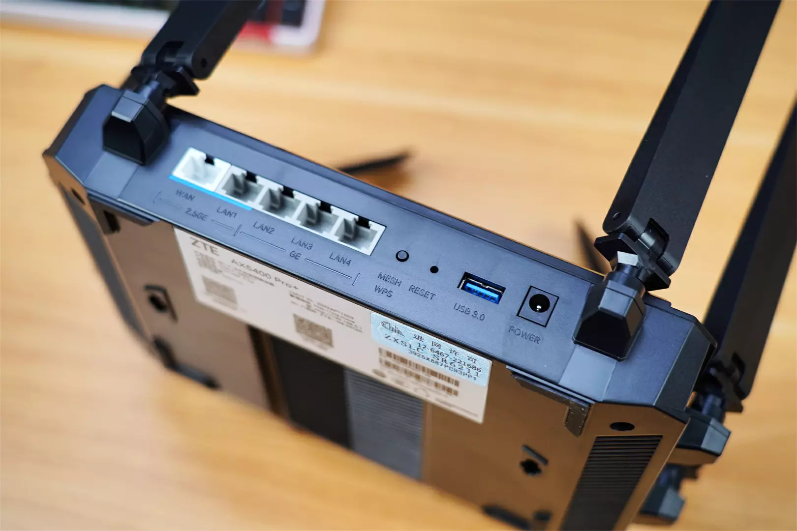 中兴AX5400 Pro+提供了5个网口,因为家中有NAS,还有别的需要物理联网的设备,所以需要多网口路由器,而这款完全满足了我的需求。5个网口中有两个是2.5GE网口,三个LAN网口。目前市面上有很多路由器虚标网口,写着2.5GE其实达不到,不过中兴这款可是实打实的,所以大家可以放心的使用。其他的就是常规的设计了,MESH组网、复位等按键,对了这里还多了一个USB3.0接口,有什么用我们下面说。