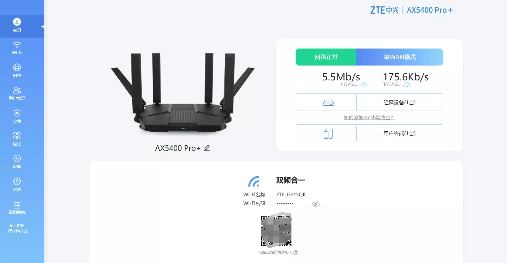 作为一款智能路由器,拥有APP支持是必须的,如果你不喜欢用电脑设置,那么使用手机APP会更加的方便,使用“中兴智能家居”APP进行设置,当然手机APP功能要全面一些,如:路由器灯光开/关、访客WIFI、定时重启、等等。对了,这款路由器还支持MESH组网,毕竟如果你家是200多平或者是个复式,那么还是需要多个路由器的,这样才能保证信号的稳定和覆盖率。
