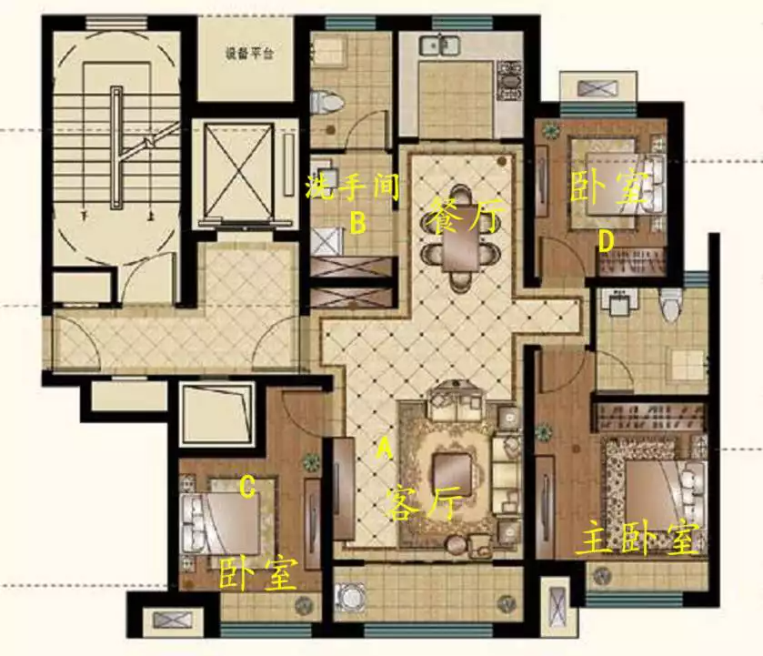 我的房子建筑面积128平方米,而且还是十八年的老房子,那时候小区的楼房用料都比较实在,墙壁厚遮挡信号的能力超强。这次我把中兴AX5400 Pro+放在了客厅A位置,为了就是让信号覆盖全面一点。平时信号最不行的就是洗手间了,相很多家庭都是这个情况,主要原因是洗手间墙多,而且还靠内,信号衰减程度很大。这次我就测试3个地方,第一个卧室C,第二洗手间B,第三个卧室 D,这次使用手机测速软件,分别测试了3个地方,希望会给大家一个参考。