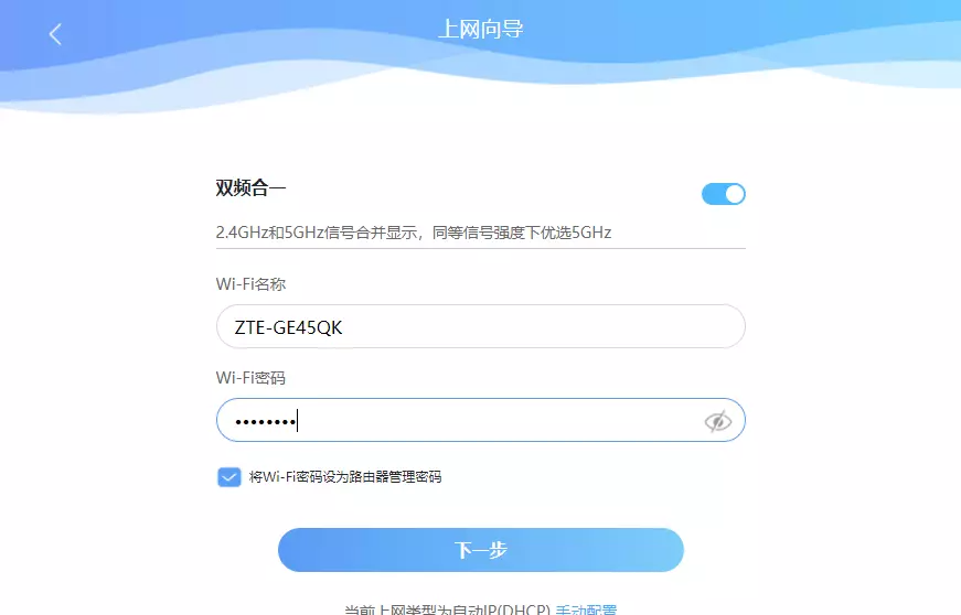 接通电源后前方的指示灯是红色,如果接通网络后会变成绿色。当然现在的路由器设置都很方便。输入192.168.5.1或 zte.home,然后进行上网设置,具体的可以按照自己的习惯来,当然中兴会有一步步的指引。